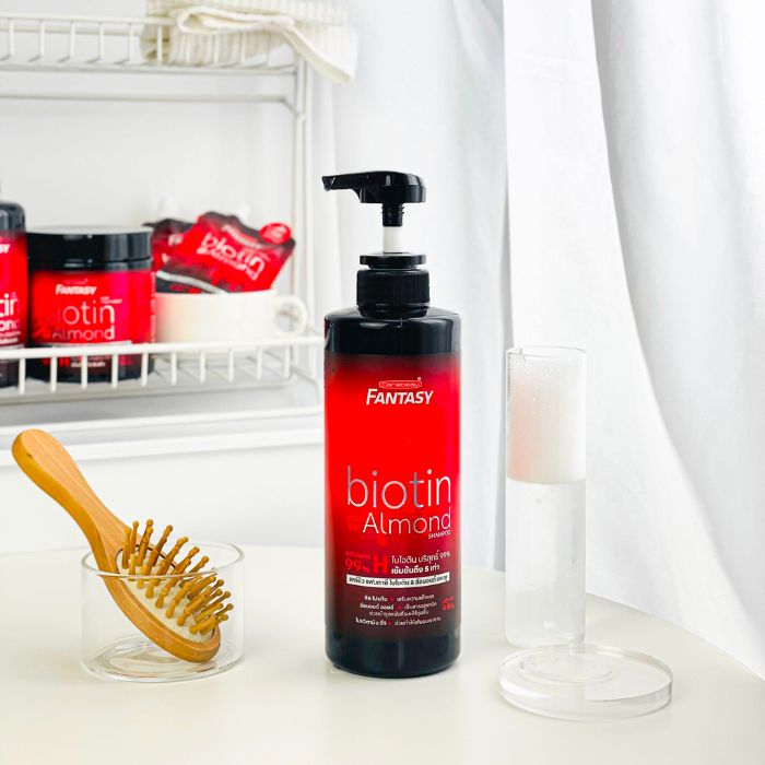 - Dầu gội Fantasy Biotin & Almond giàu Vitamin H (Biotin) nguyên chất ở mức 99%, giúp nuôi dưỡng để tăng cường chất sừng của tóc.