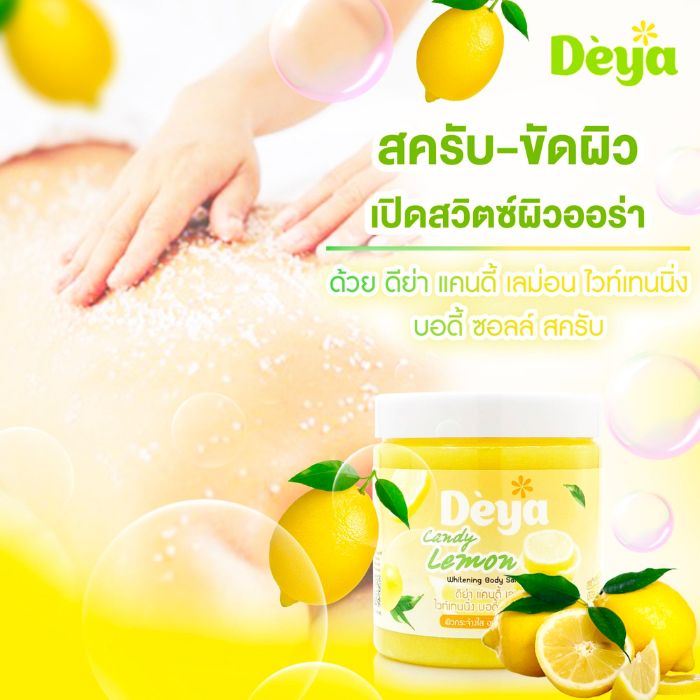 - Deya Whitening Body Salt Scrub Lemon có nhiều Vitamin C từ chiết xuất chanh, giúp làm săn chắc và sáng da.