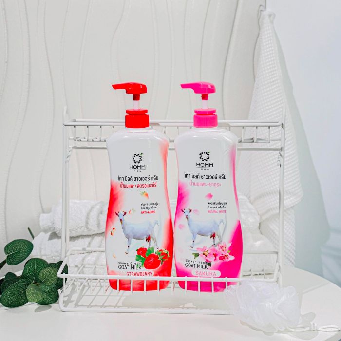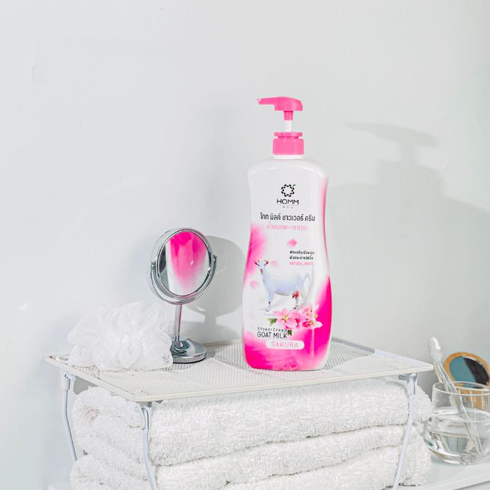 - Sữa tắm toàn thân Homm Sakura là một loại kem tắm thư giãn, kết hợp giữa dưỡng chất của sữa dê với chất kem mềm mịn, thơm mùi hoa anh đào.
